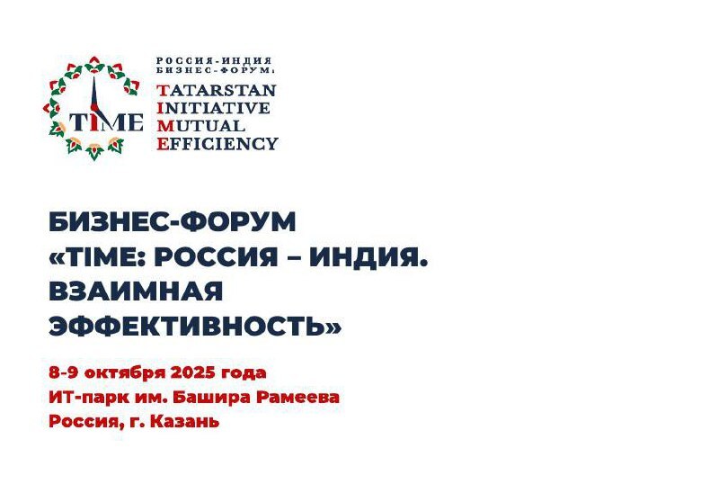 В Казани пройдет международный бизнес-форум «TIME: Россия – Индия. Взаимная эффективность».