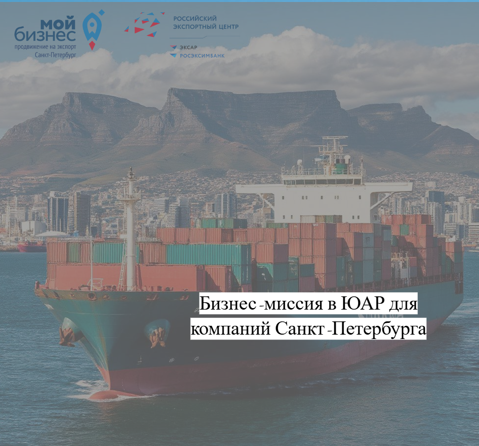 Центр поддержки экспорта Санкт-Петербурга приглашает предприятия города принять участие в деловой миссии в Южно-Африканскую Республику с 7 по 12 июля 2025 года. Ссылка на предварительную регистрацию.