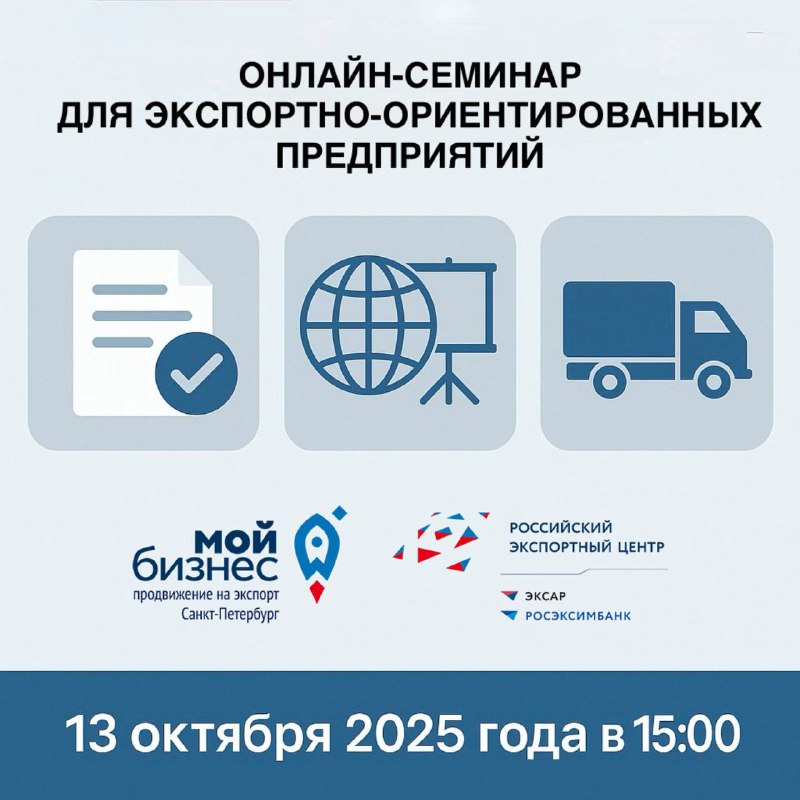 13 октября 2025 года в 15:00 состоится онлайн-семинар для экспортно-ориентированных предприятий.